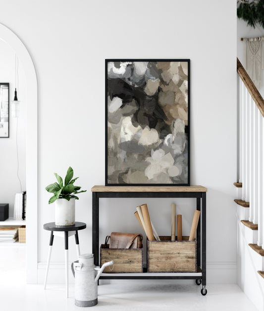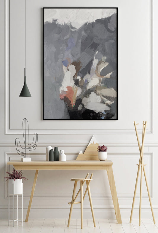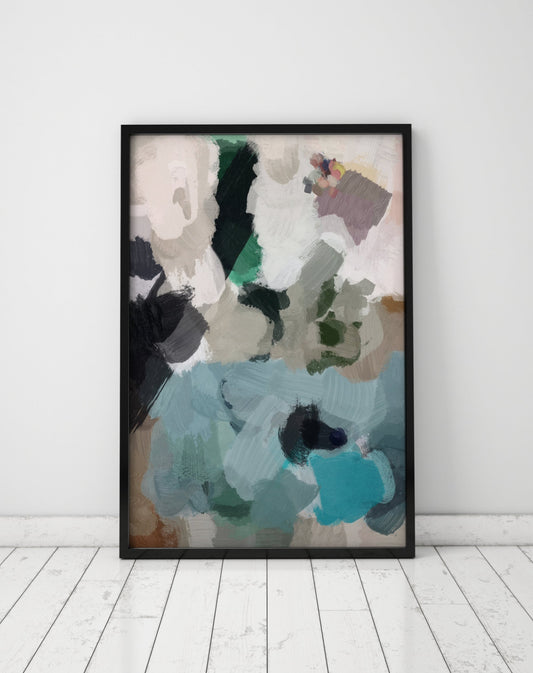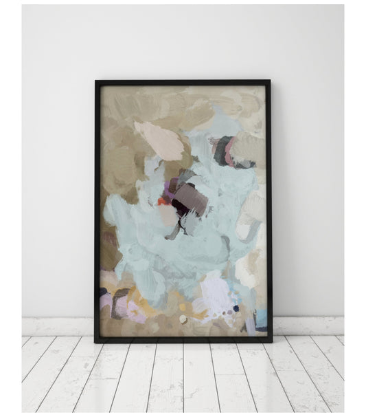 • Nav blue, beige and gray abstract painting print. Giclee print