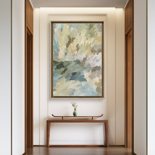Large Neutral Abstract Canvas Wall Art – Beige Gray Green Modern Painting | Canvas Print C237)